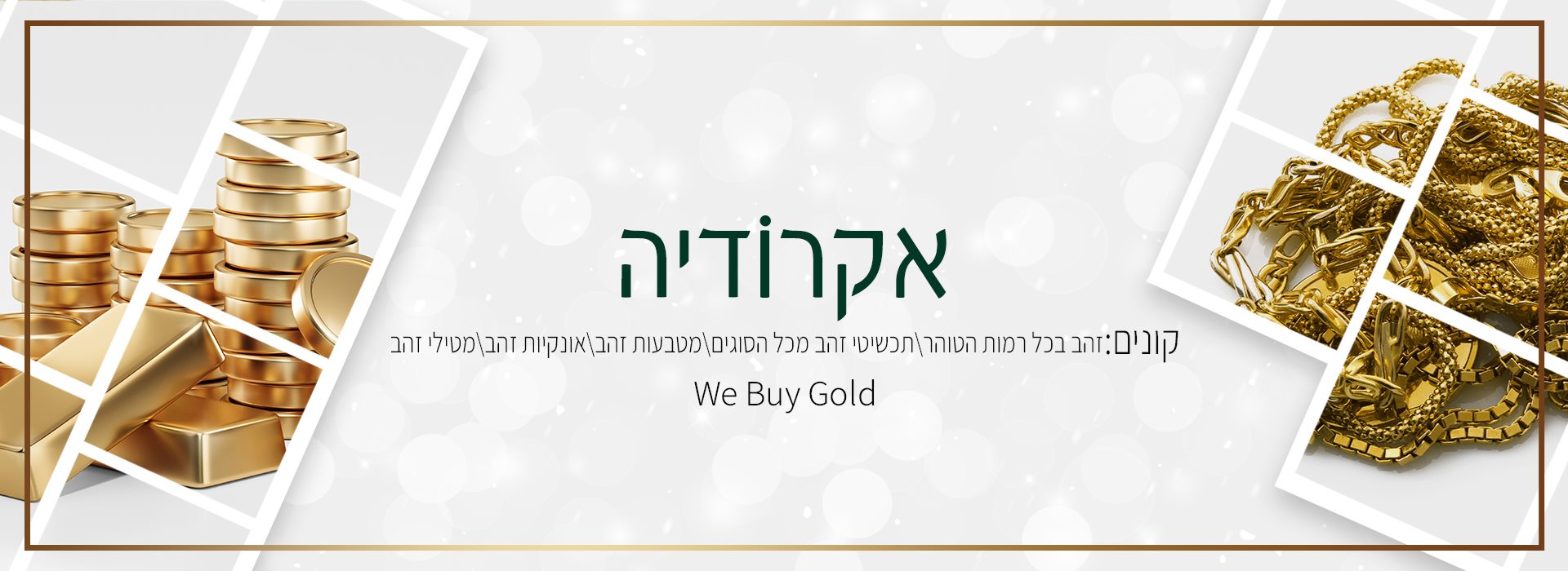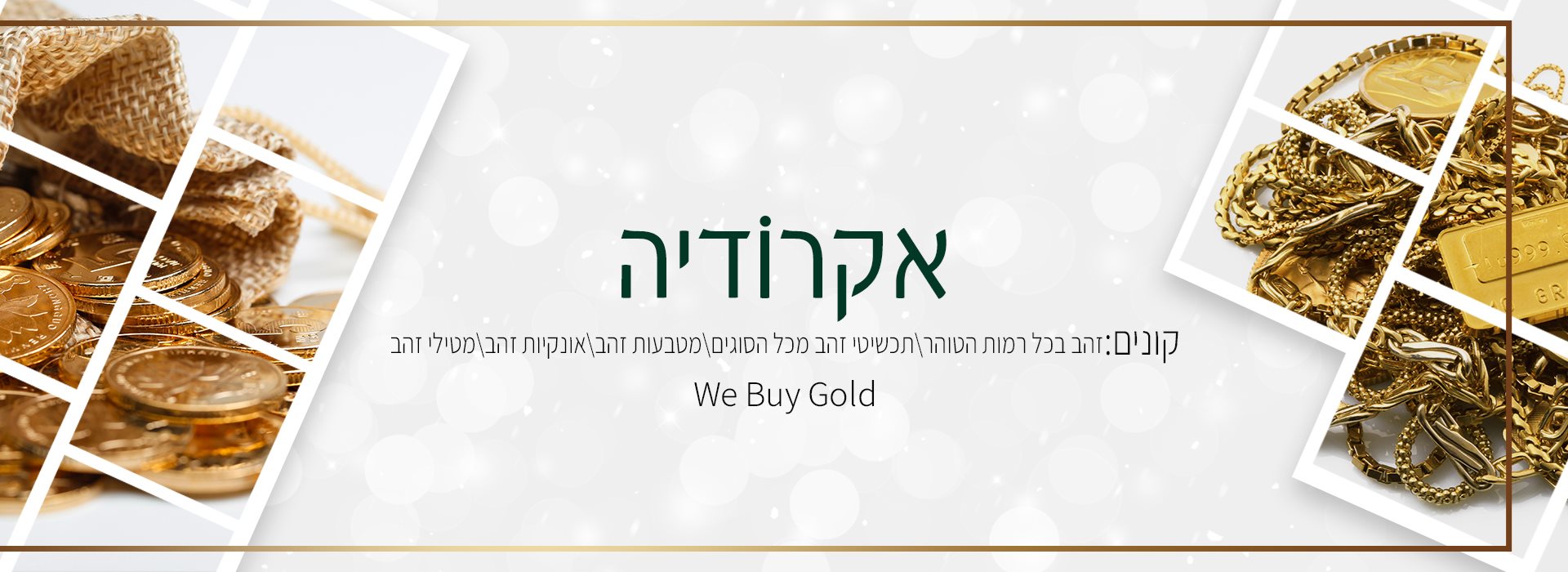 אקרודיה מעניקה שירותי הערכת מחיר לזהב בכל צורותיו: